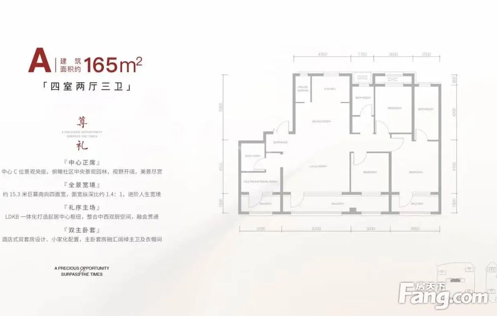 【建面165㎡4居】1648万,4室2厅3卫, 南·北朝向,