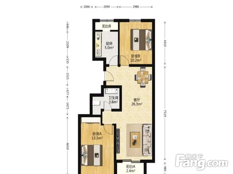 【户型】一卧朝南 一卧朝北 户型方正 无浪费面积