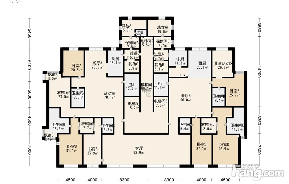 户型为两套450平打通的900平大平层