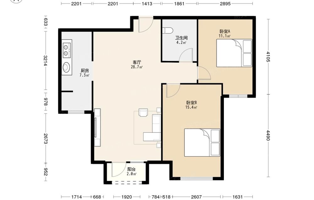 1大两居 舒适宜居 格局方正 采光 货真价实的无浪费空间