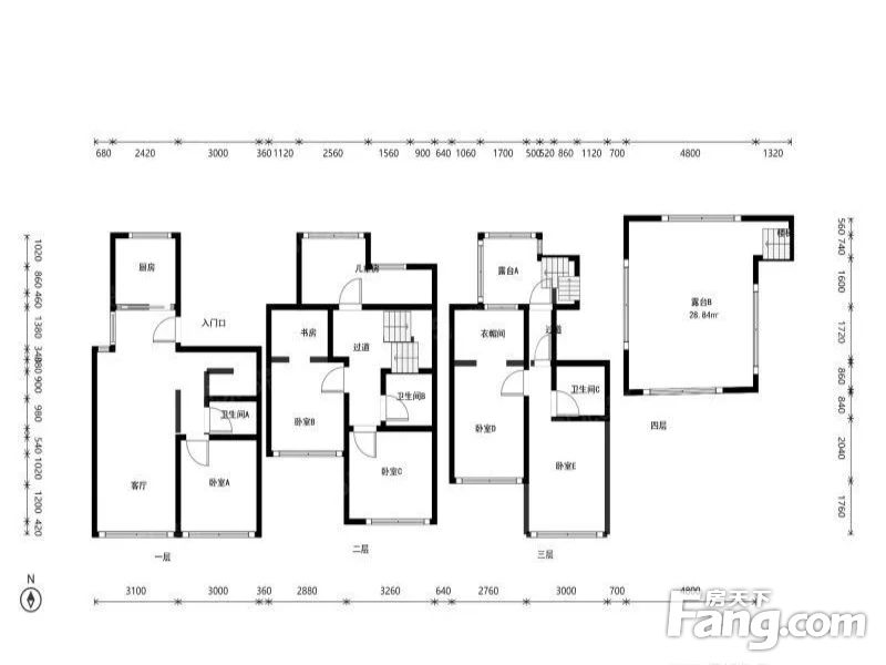 广阳城地铁长阳世茂维拉 别墅 上叠共三层四居三卫三代居住
