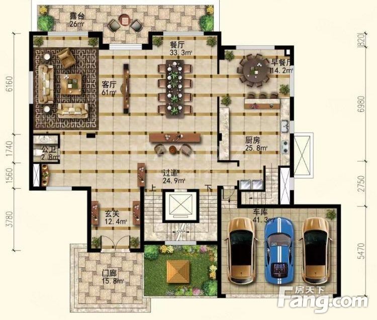 空间格局:5室3厅6卫