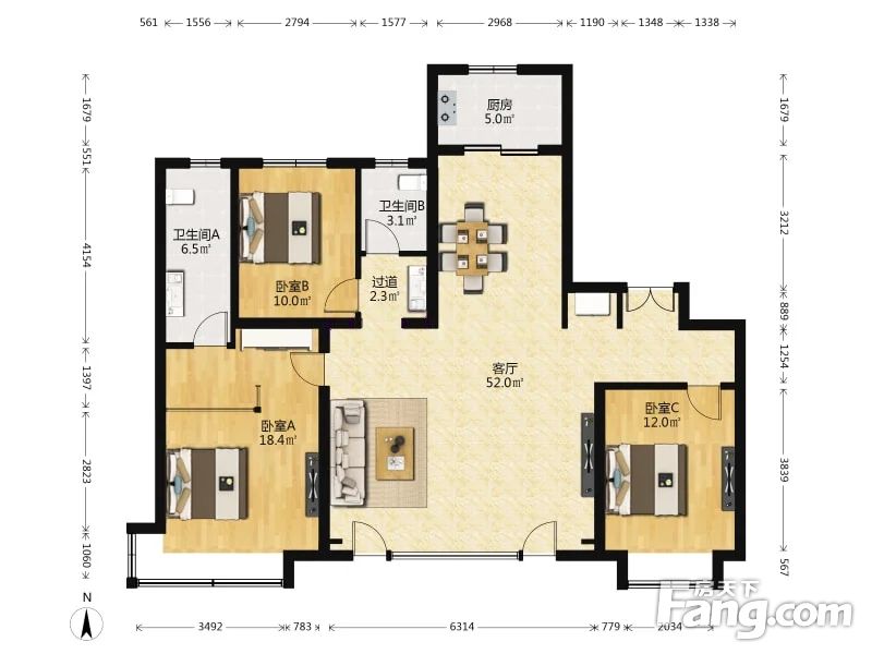 3室1厅2卫