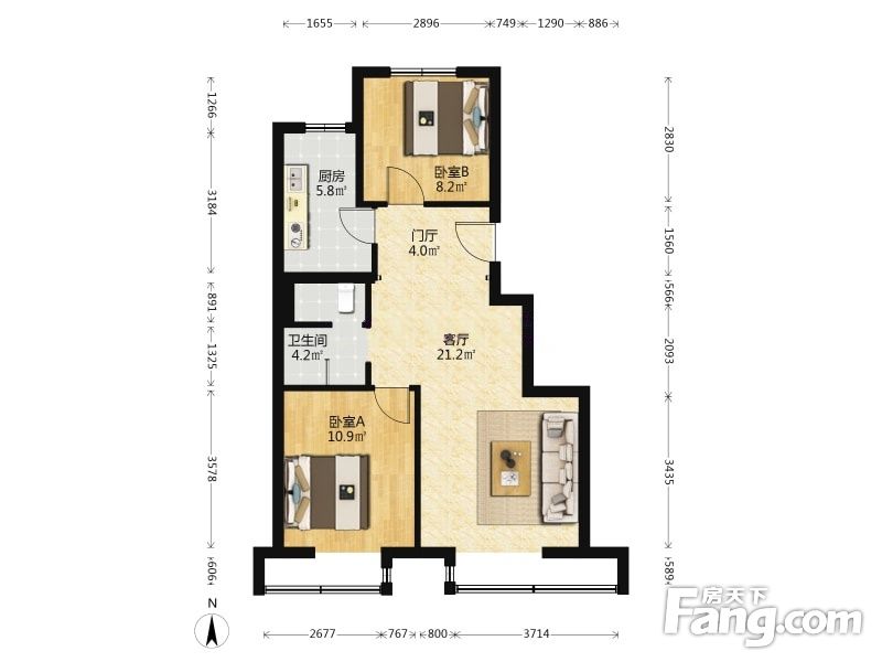北京经开汀塘 2室1厅 83.52平 南别通透 精装修可看房
