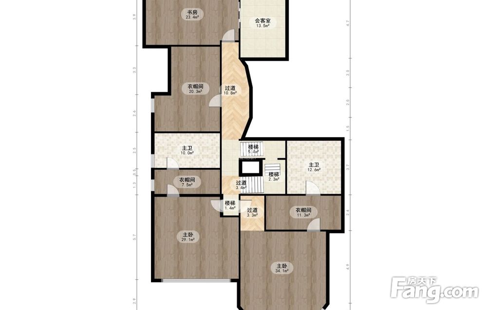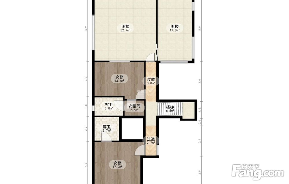3、顶层层高高,坡屋顶设计, 点有7米层高,装修完5.9米。
