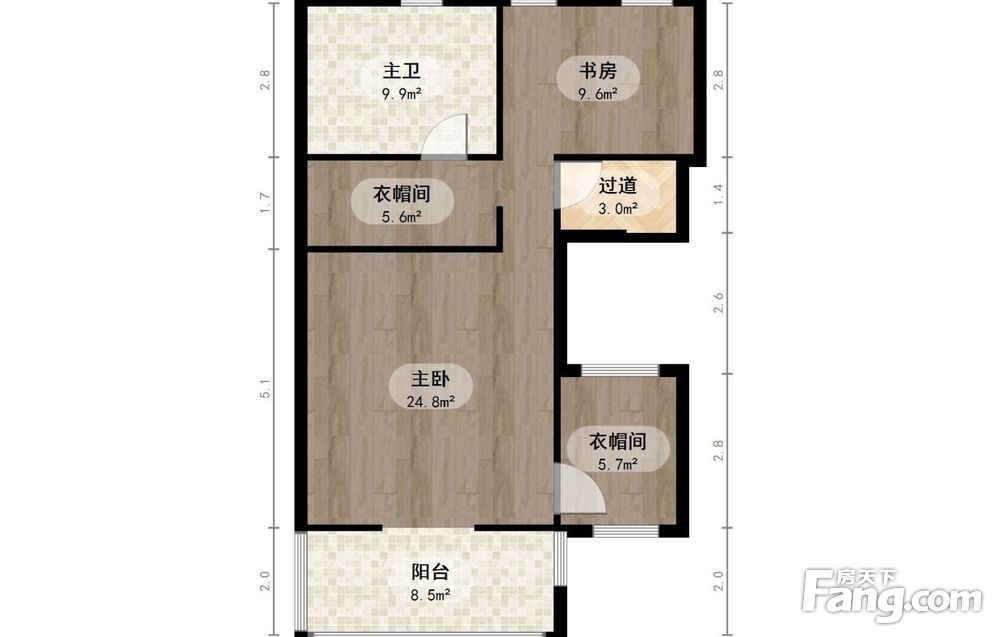 地上三层:主卧套带书房,阳台已经封起来,北向带次卧;