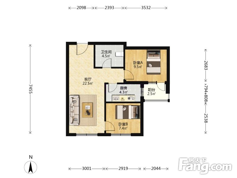 古城现代嘉园 2室1厅 76.61平