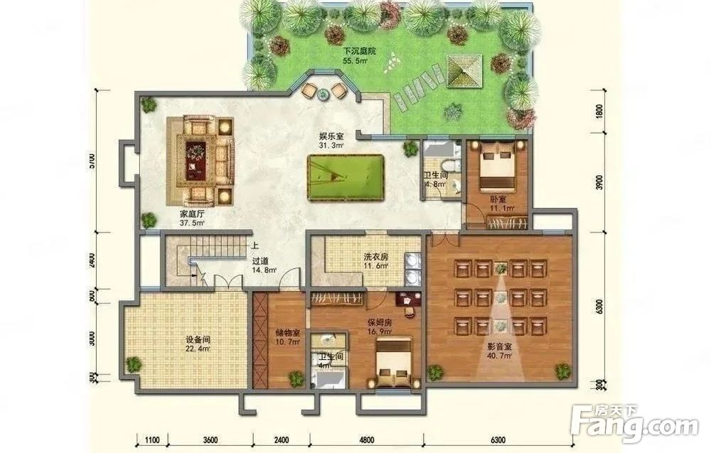 户型描述:客厅9米大挑空+五个套间七居+南向三个阳台+北向一个阳台+20米大面宽+前二后三无地下+带温泉房