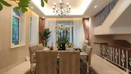 北入户南花园。此别墅是开发商样板间,精装修,意大利风格别墅,16米超大面宽,四室四厅加一书房,布局紧凑,各功能区划分极为合理。进入玄关后,挑空的起居室、家庭室均朝南,采光。别墅一层有朝南客卧,朝南的餐厅。二层有三个卧室,豪华主卧区功能完备,270度观景阳台,尽享清幽宁静的户外阳光。二层还有南北两个客卧,同时另外设置了学习区书房,成为子女的私塾领地。临近景观带位置。视野好无遮挡。看房提前预约