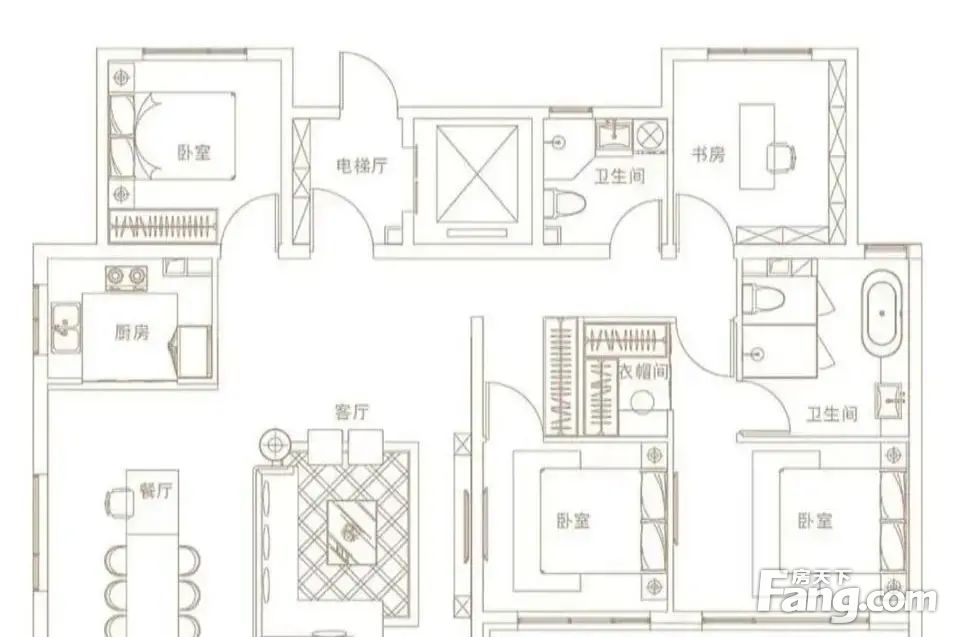 房屋拥有相对宽松的尺寸,布局通透,动静分离,设计豪华