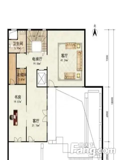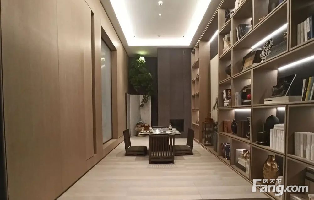 【入户层】整层实际可利用面积约为195平米,7.5米南向面宽,室内高度达4.5米,由礼序前厅、会客书房、主会客厅共同组成。