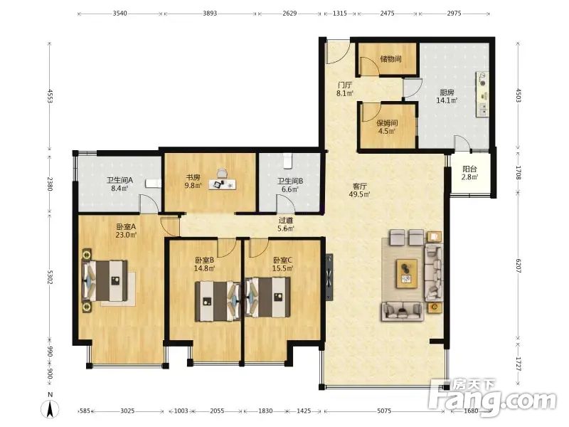 房屋拥有相对宽松的尺寸,布局通透,动静分离,设计豪华