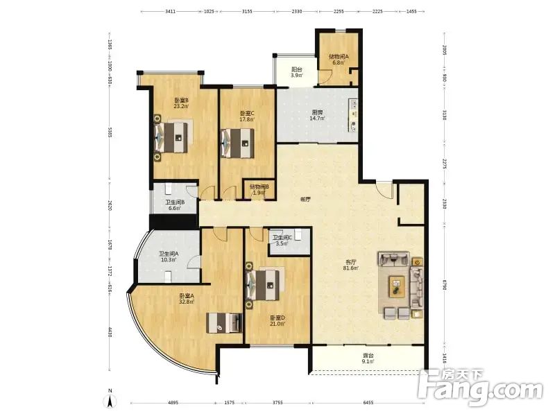 户型:原始户型四居 布局合理 南北朝向 面积308.32㎡