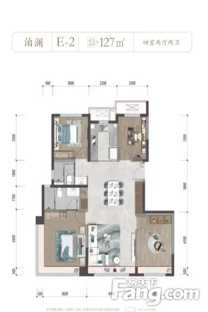 建发·观堂府 地铁房 127.21平4居 南北方正四叶草户型