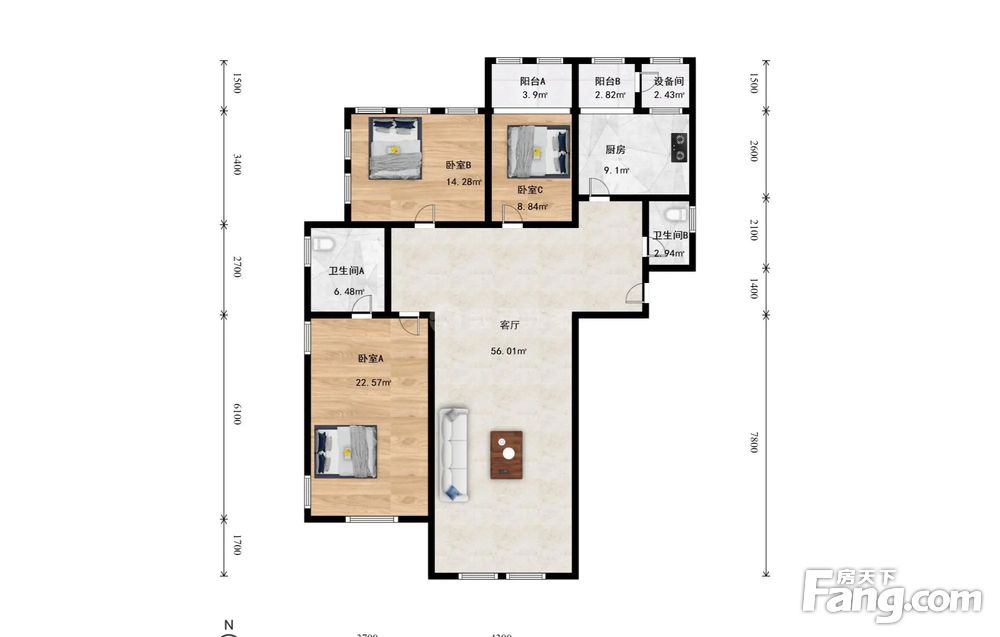 3室1厅2卫