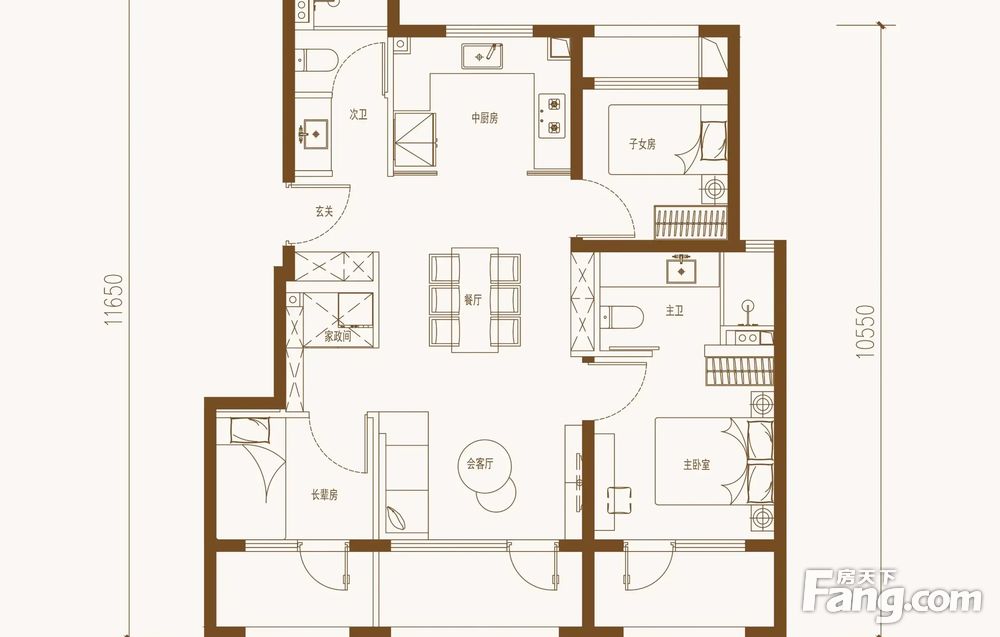 房屋拥有相对宽松的尺寸,布局通透,动静分离,设计豪华