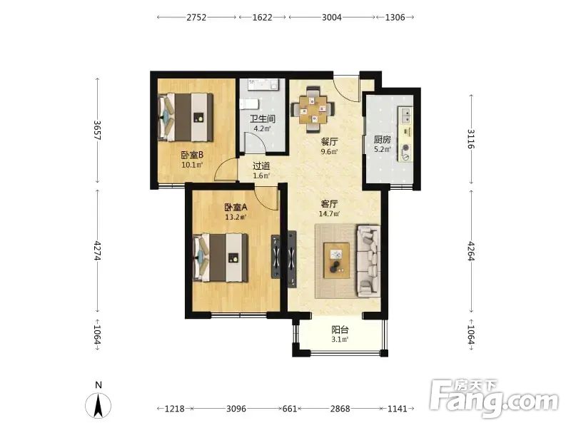 春风雅筑 2室1厅 87.48平
