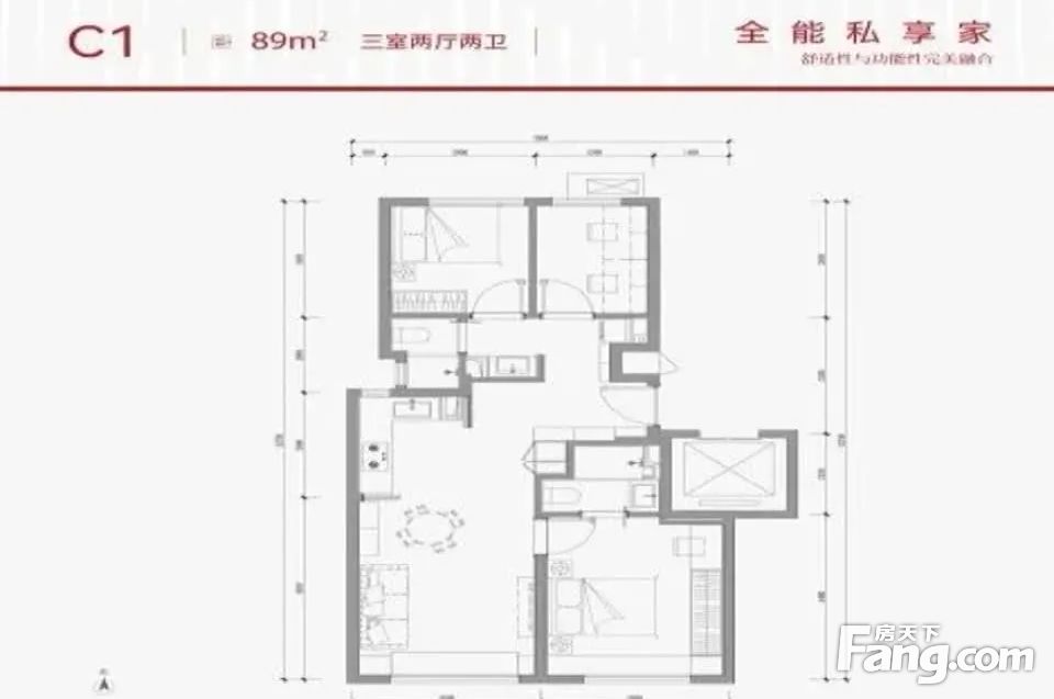 【建面89㎡3居】550万,3室2厅2卫,南·北朝向