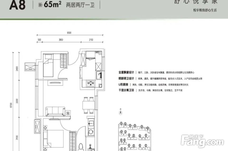 房屋户型方正,景观布局合理,设计实用,空间舒适,格局优越,采光通风良好