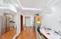 入户就是餐厅,右手边是宽敞大厨房带一个东向阳台,动静线明显分割,餐客厅一体,两间卧室都是东向朝小区内