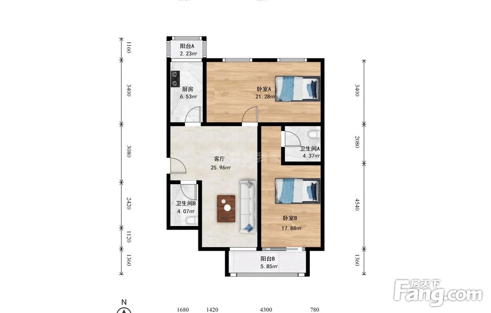 2室1厅2卫