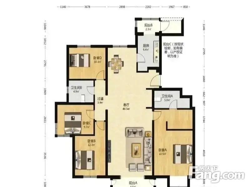 3.户型正气:南北的户型、格局周正合理、无浪费面积。