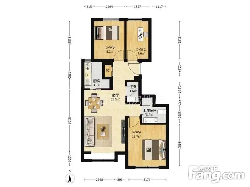 3室1厅2卫
