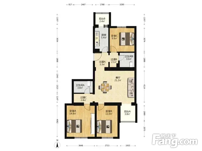 3室1厅2卫