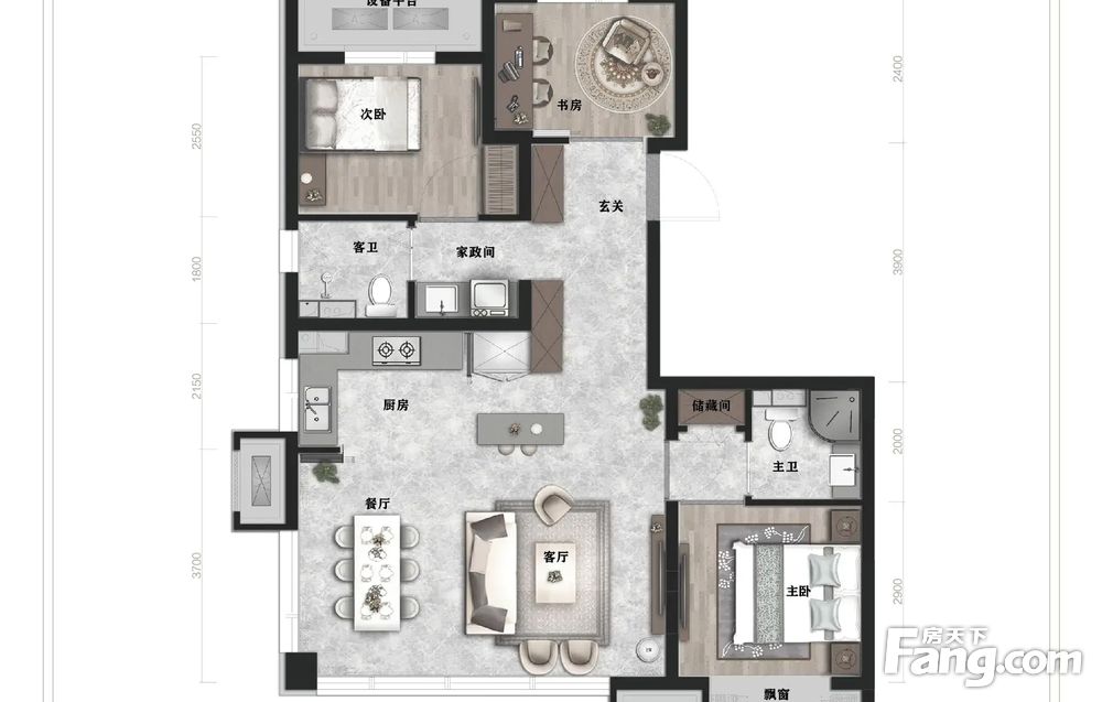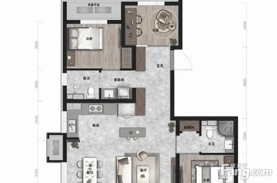 房屋拥有相对宽松的尺寸,布局通透,动静分离,设计豪华