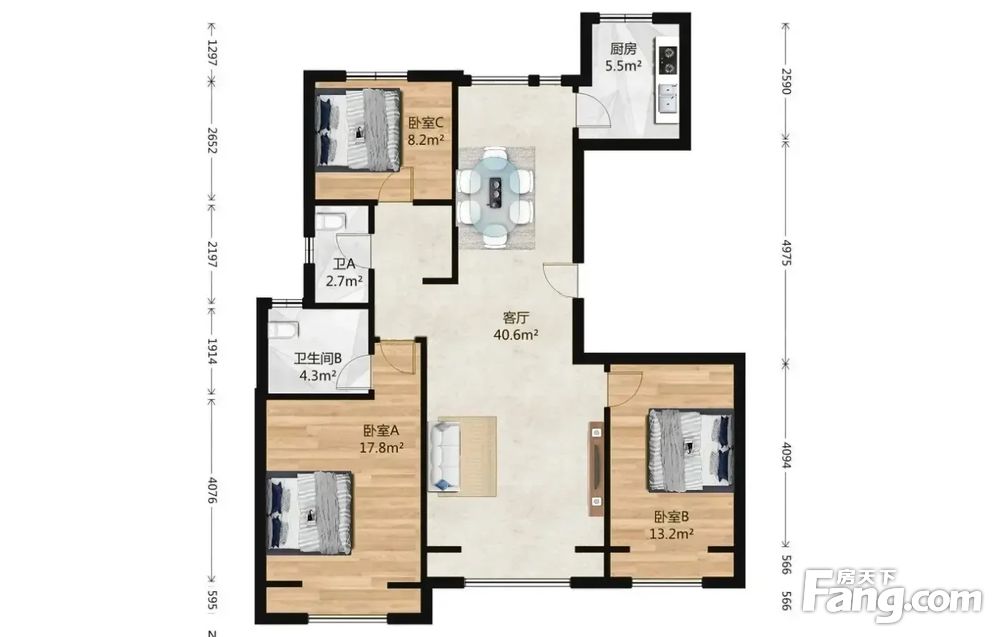 长阳·徜徉嘉园祥云街8号院,南北通透三居