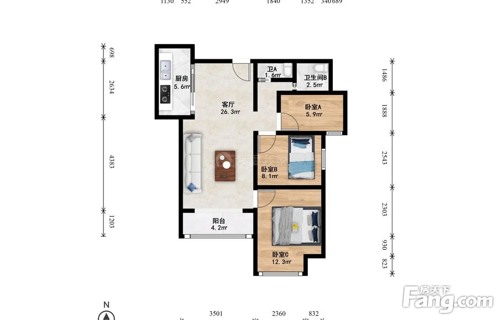 3室1厅2卫