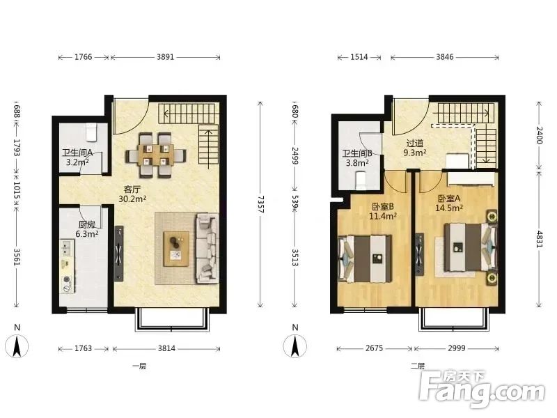 2室1厅2卫