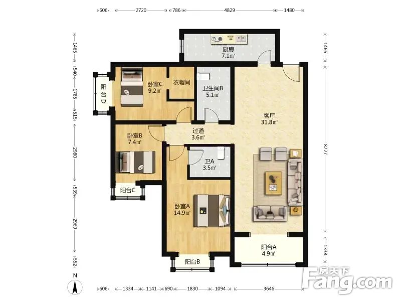 3.户型正气:南北的户型、格局周正合理、无浪费面积。