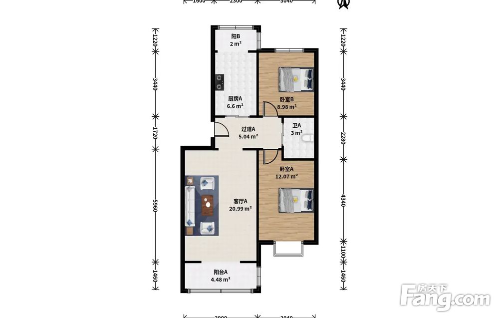 梨园·云景里南门H户型·2室·1厅