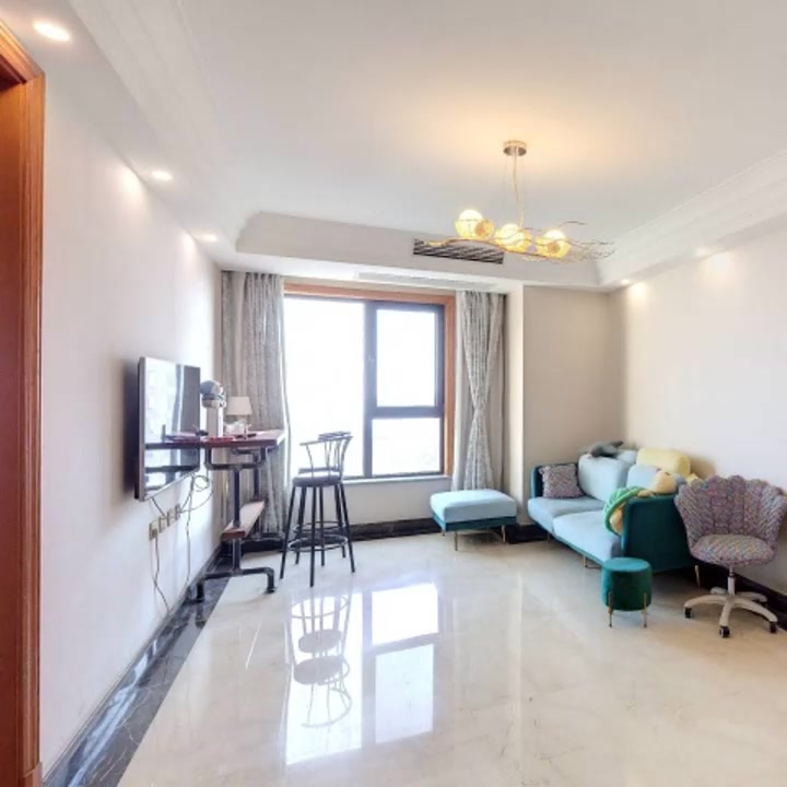 本房是全南向的两居室,主卧客厅朝南,次卧朝南,厨房带窗户,全天采光好,开发商自带精装修。