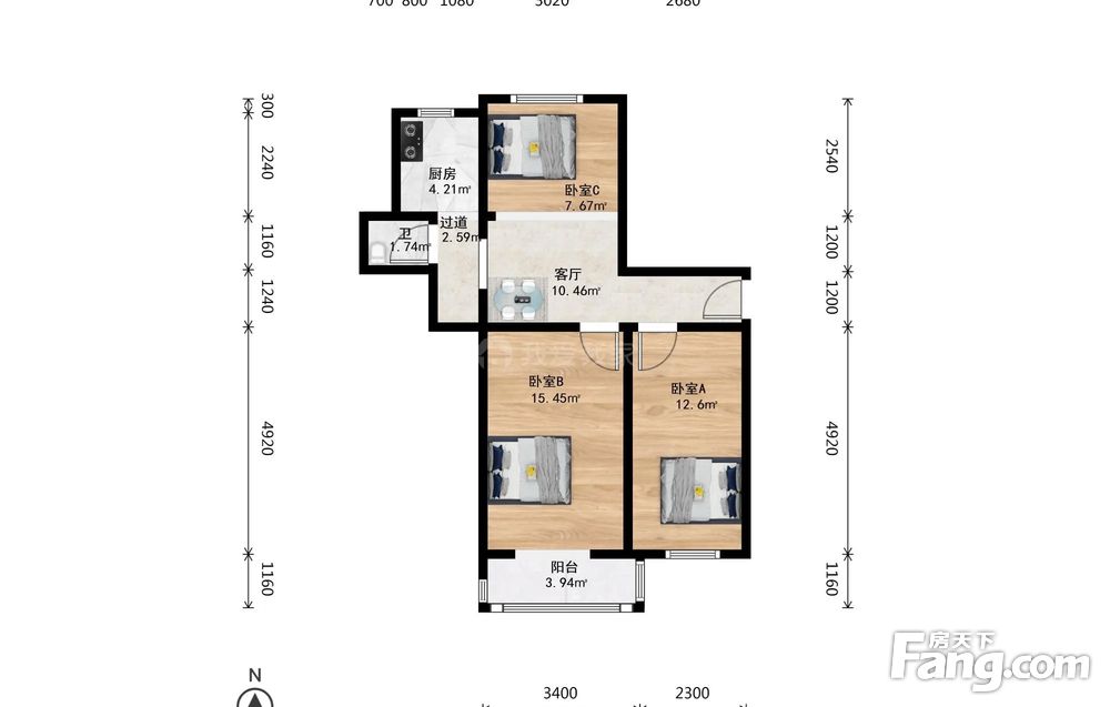3室1厅1卫