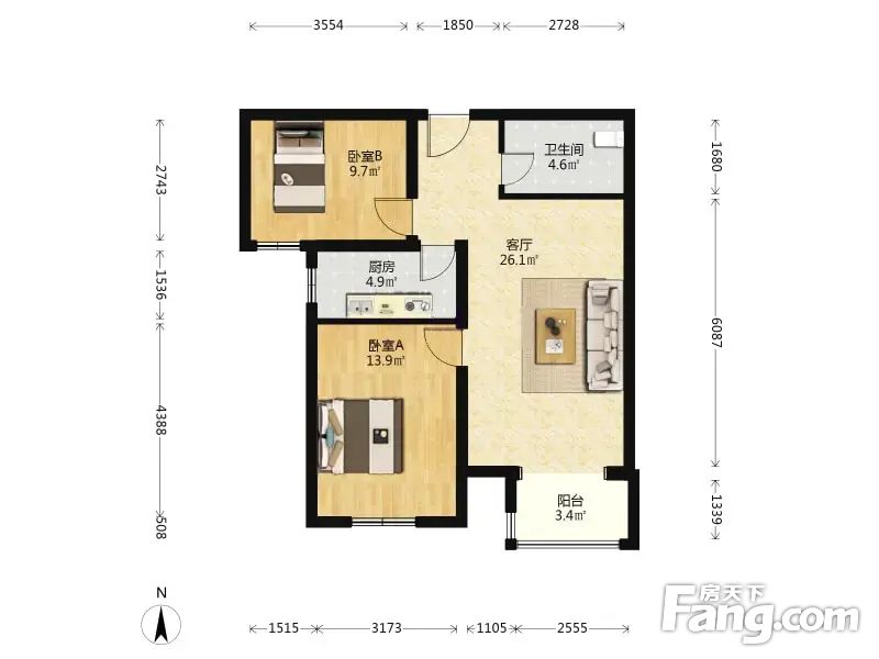 通景园 2室1厅 90.01平