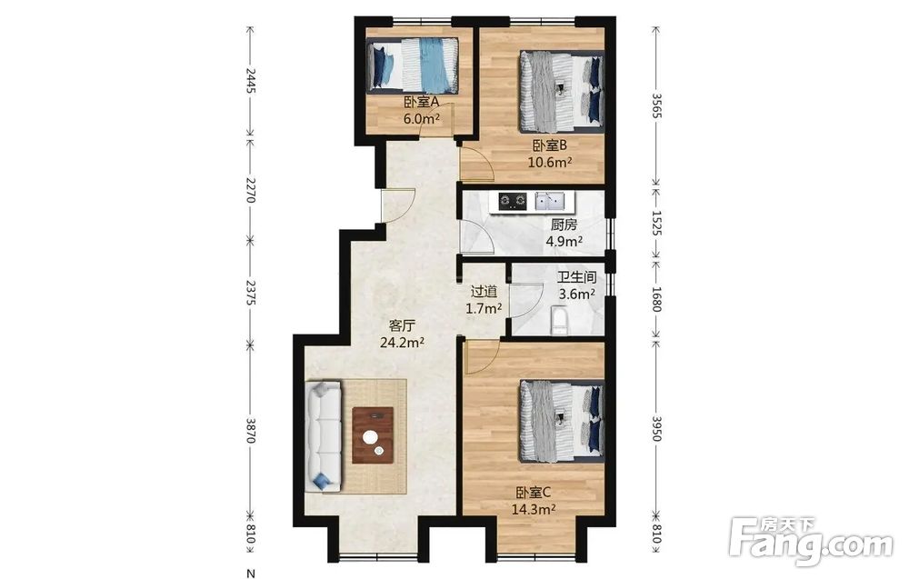 <br>核心卖点:南北通透,高楼层,无遮挡<br>户型介绍:客厅朝南,主卧朝南,两个 次卧朝北,户型方正,厨房、卫生间带窗户,全明格局<br>交通出行:小区距离大学城地铁站610米。距离大学城公交站587米,有832路、934路、953路、F1路内环、F1路外环、F34路、通勤向阳。距离南六环5.5公里,南五环15公里,京港澳4.7公里。