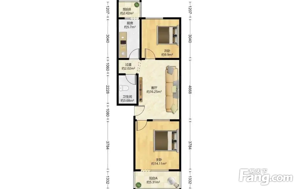 2.朝向:南北,房间采光是没任何问题的。