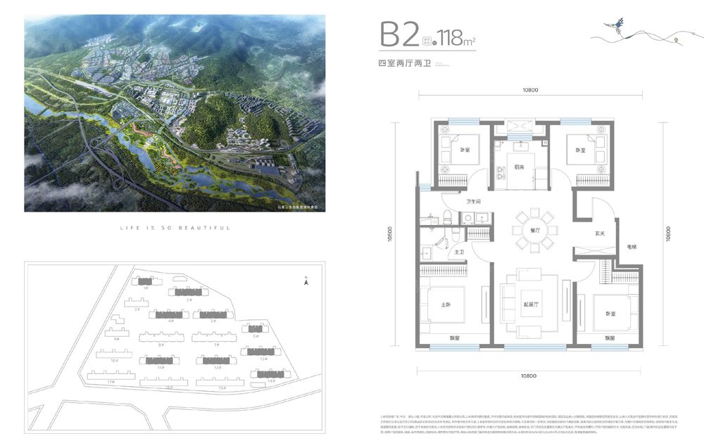 楼栋规划:17栋5层低密洋房:95㎡、118㎡、139㎡(一层有下跃,顶层有 )