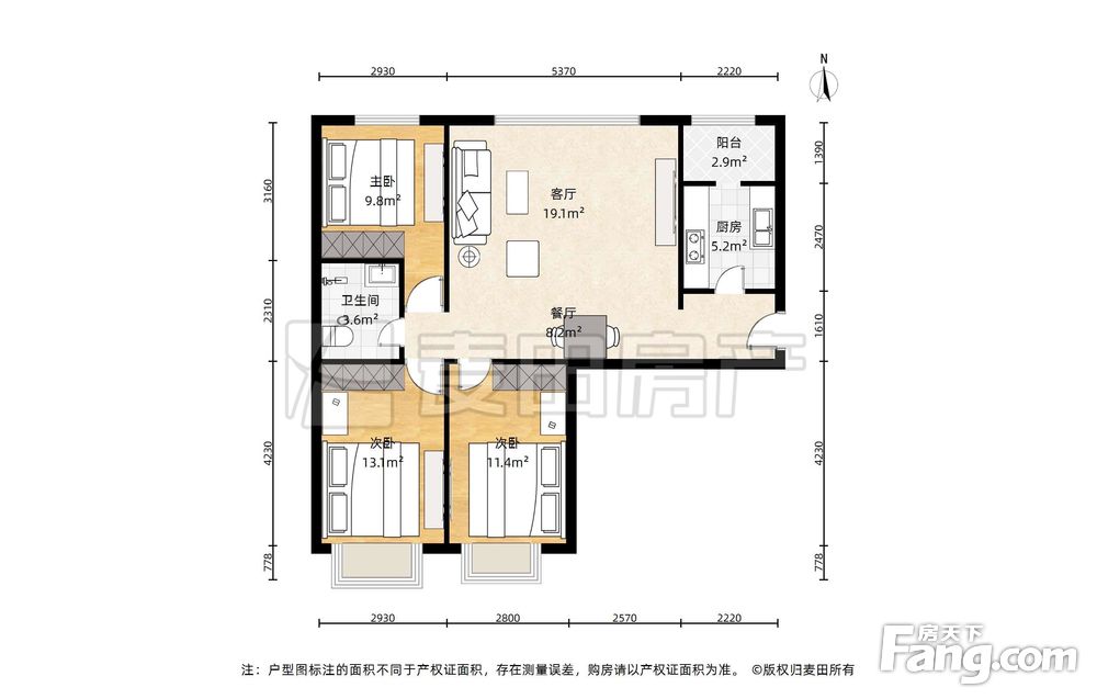 房屋年代∶2018,面积∶107.28平方米,朝向∶南北