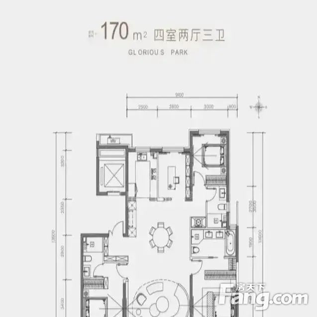 【建面170㎡4居】4室2厅3卫, 南·北朝向, (特惠房1223万)