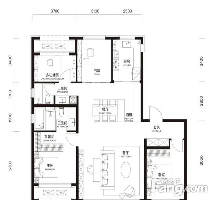 房屋拥有相对宽松的尺寸,布局通透,动静分离,设计豪华