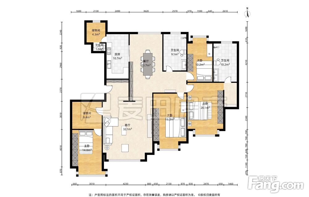 【房源属性】总高17层,房子在11层,274.91平米南北通透4居室