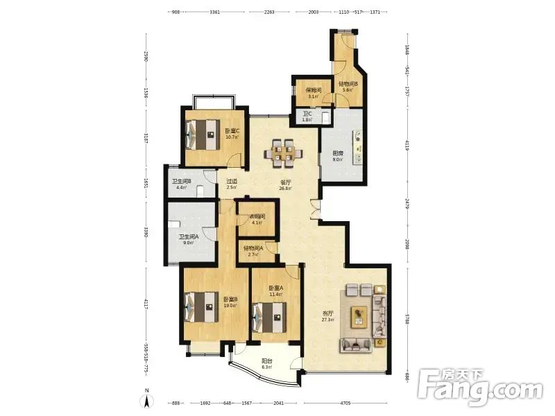 海晟名苑南区 3室2厅 209.4平