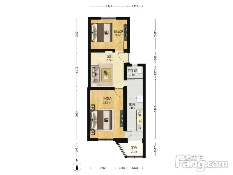 (买方零拥)金沟河3号院 2室1厅 61.7平