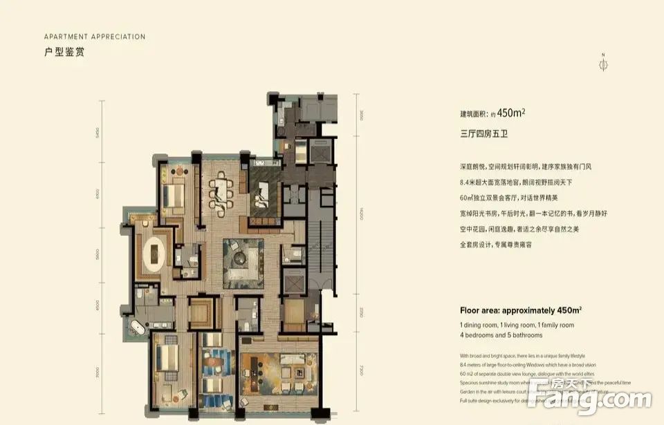 房屋拥有相对宽松的尺寸,布局通透,动静分离,设计豪华。