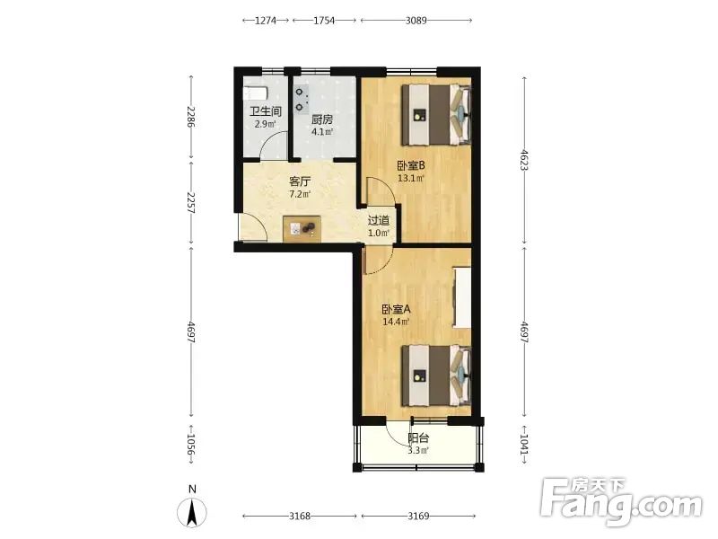 方正,两个卧室大,使用方便。