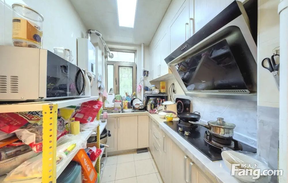 此房是南北通透全明两居室户型,一进门是朝北次卧室,厨房和卫生间朝北带窗户,