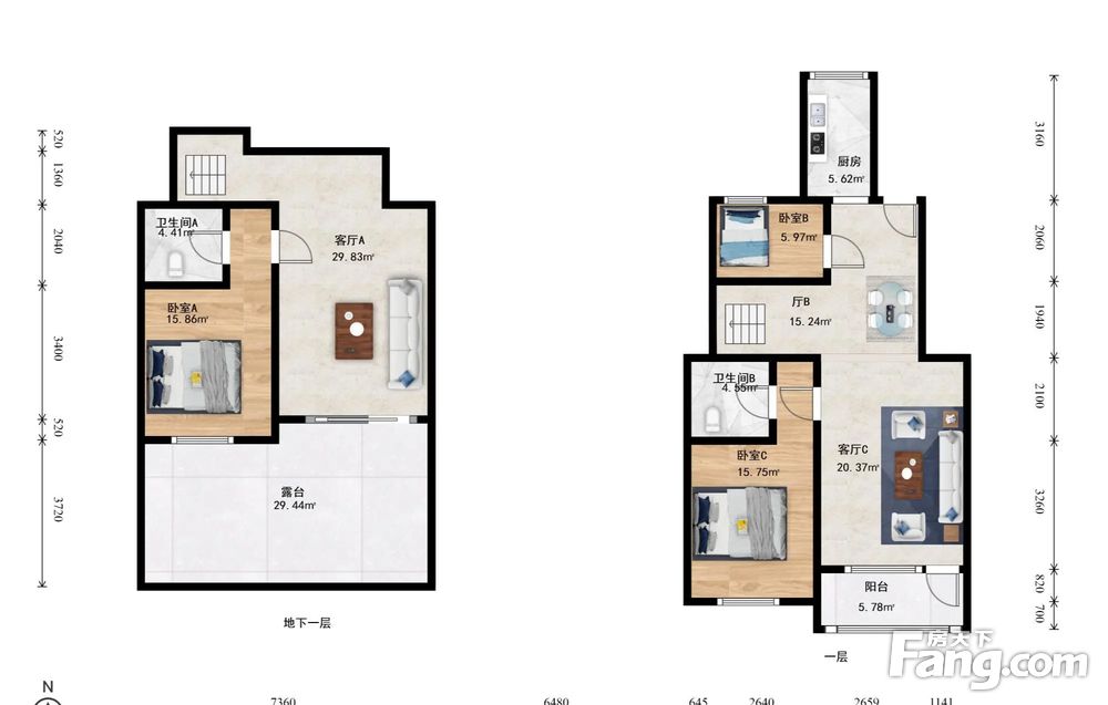 远洋傲北洋房171平米带电梯跃层3室3厅毛坯房520万